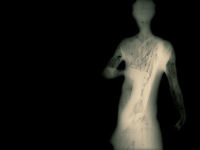 the digital collaging of my own scans, a ghostly, figurative image of my